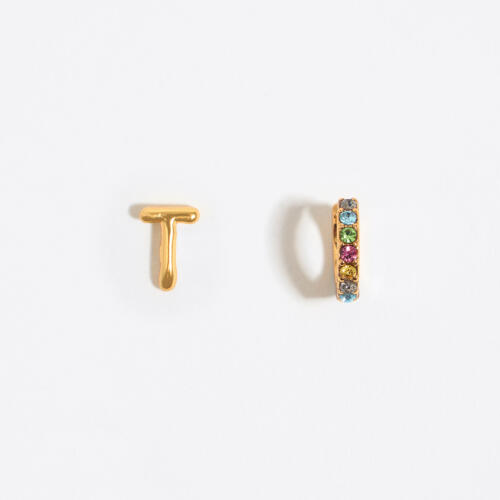 BIMBA Y LOLA Multicolor crystal mini hoop and letter T earrings Bimba Y Lola £38.00 -