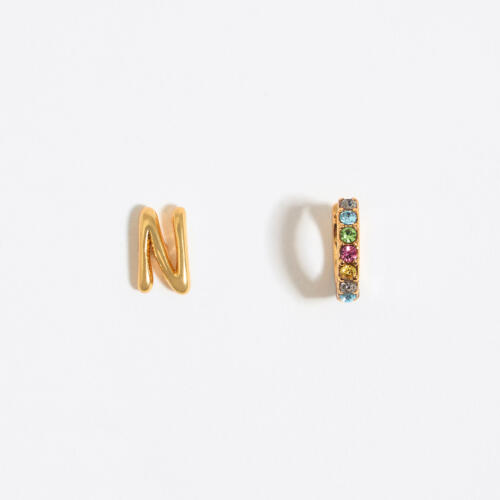 BIMBA Y LOLA Multicolor crystal mini hoop and letter N earrings Bimba Y Lola £38.00 -