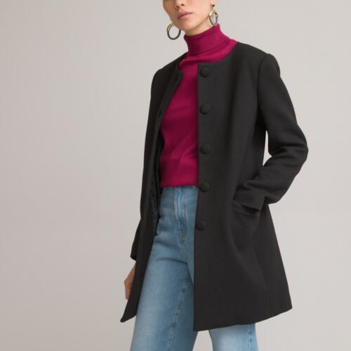 Buttoned Mid-Length Coat with Round Neck La Redoute Collections £39.60 -
