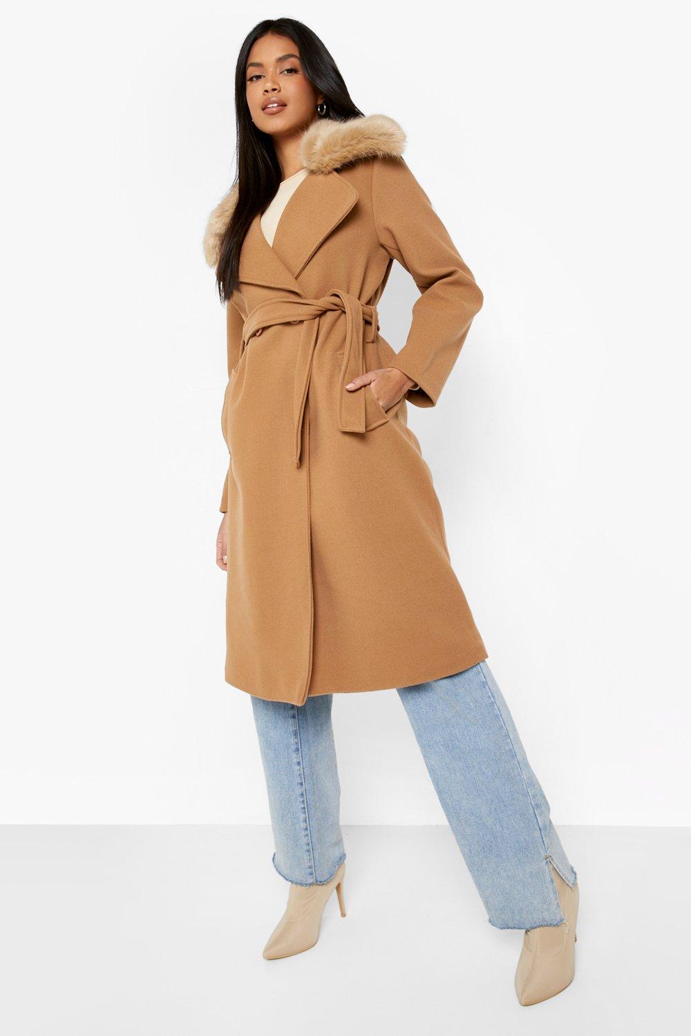 Womens Petite Funnel Neck Maxi Puffer Coat