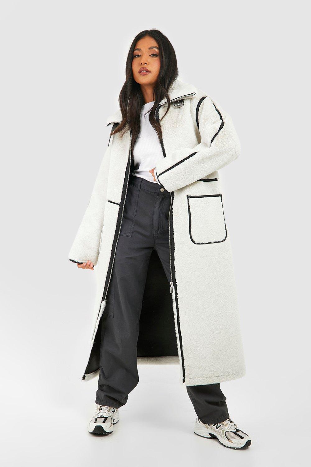 Womens Petite Fur Seam Detail Longline Aviator Coat BoohooSave 49%£43.00