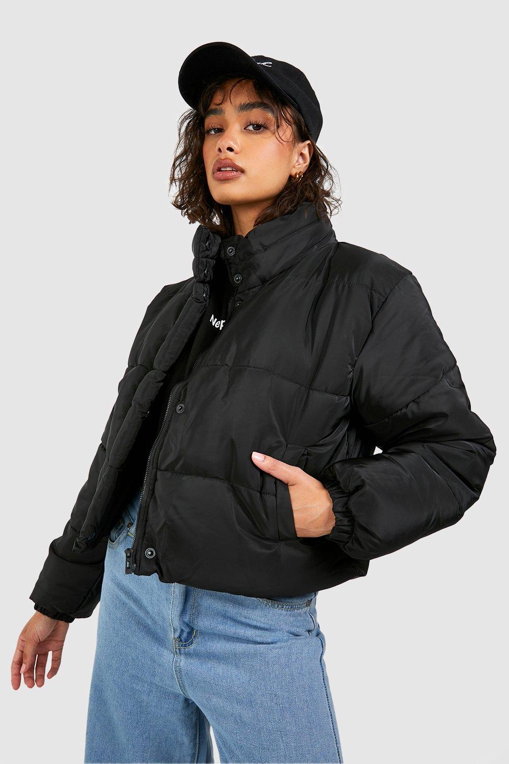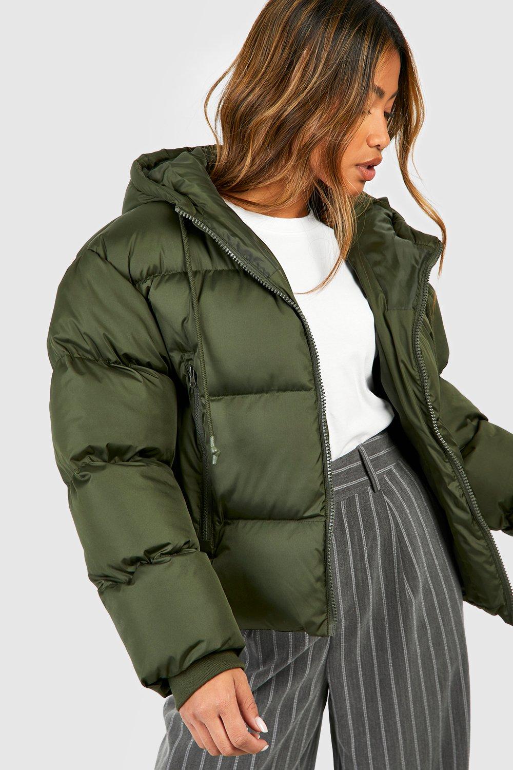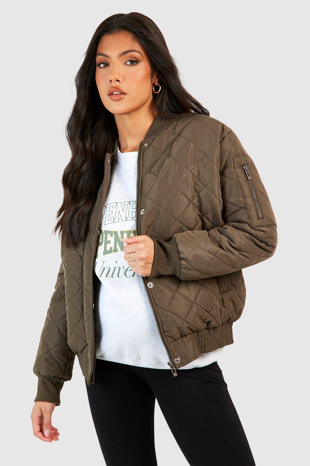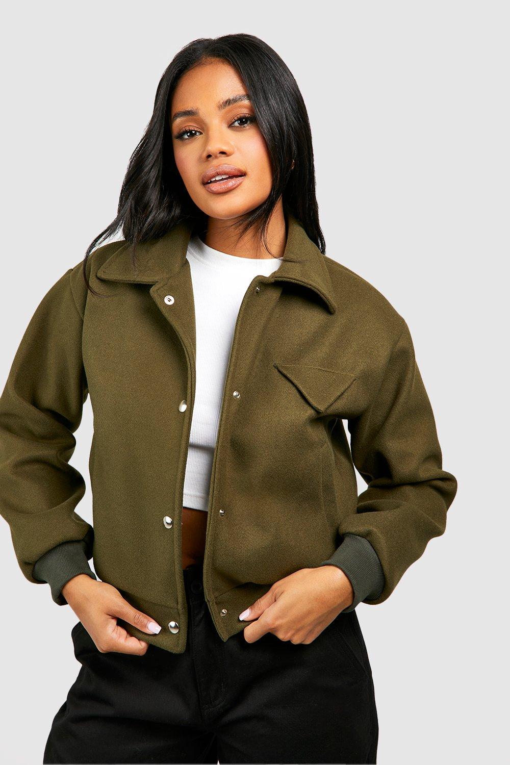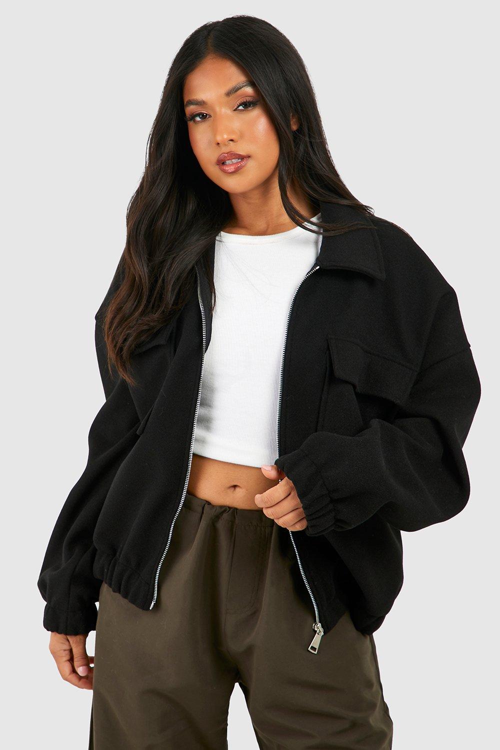 Womens Petite Wool Look Pocket Detail Oversized Bomber Jacket
