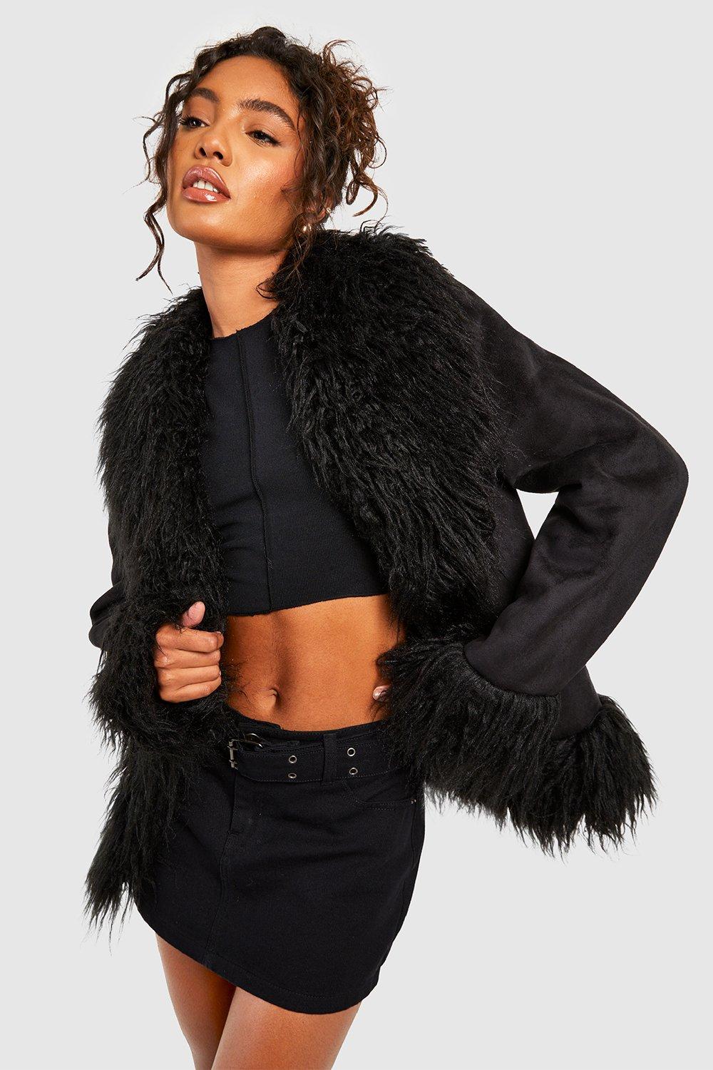 Womens Petite Faux Fur Trim Jacket BoohooSave 36%£48.00
