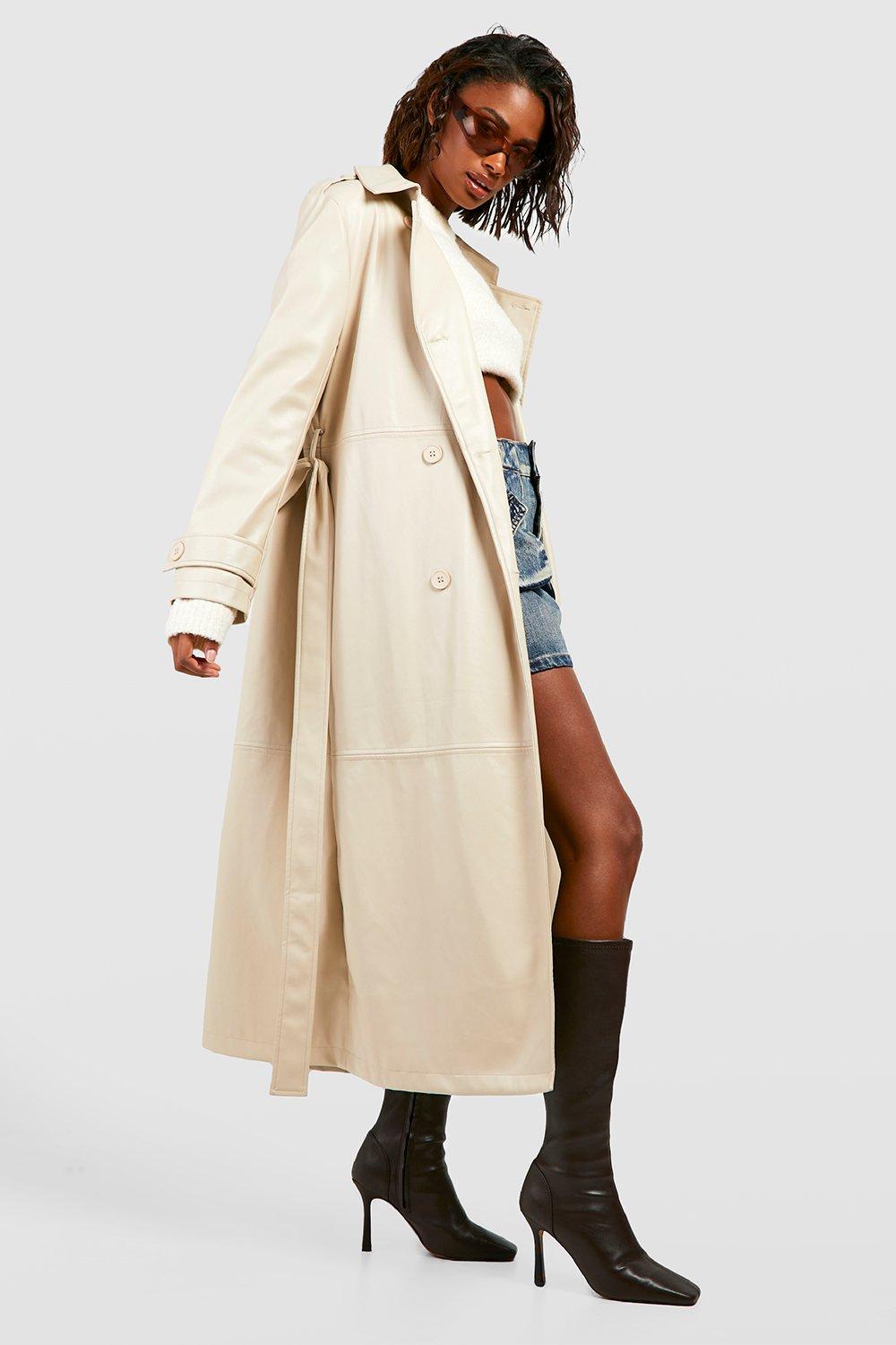 Womens Faux Leather Maxi Trench Coat BoohooSave 91%£8.00