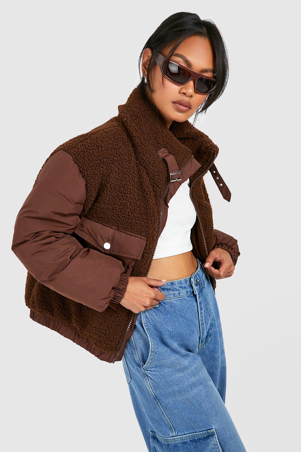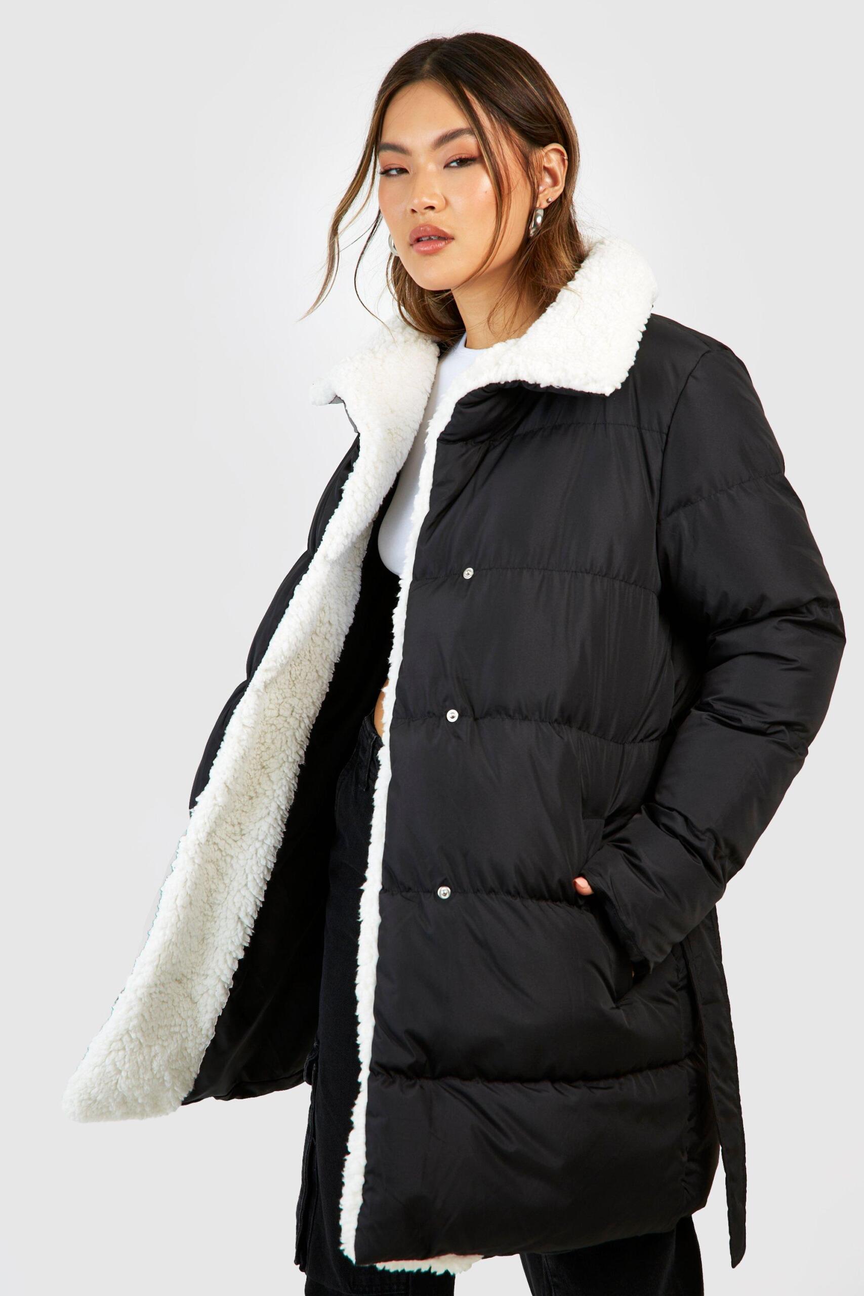 Womens Teddy Trim Wrap Belted Puffer Jacket BoohooSave 36%£32.00
