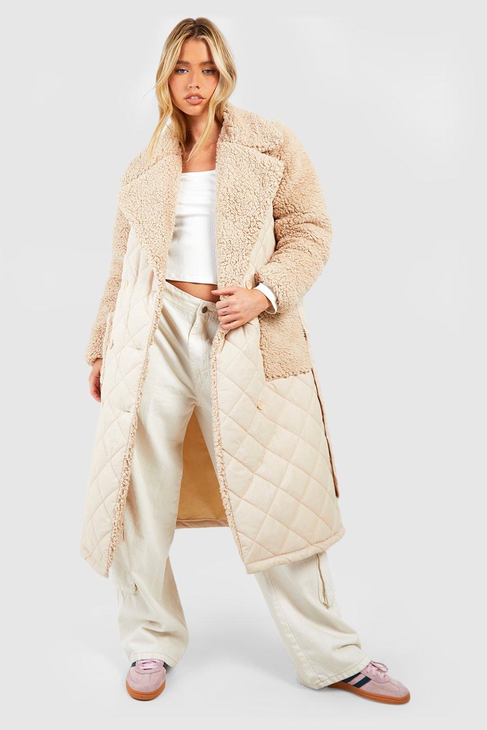 Womens Teddy Panelled Quilted Trench Coat BoohooSave 42%£35.00