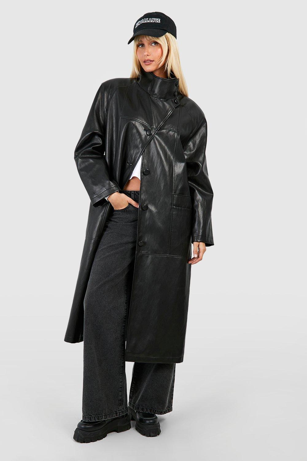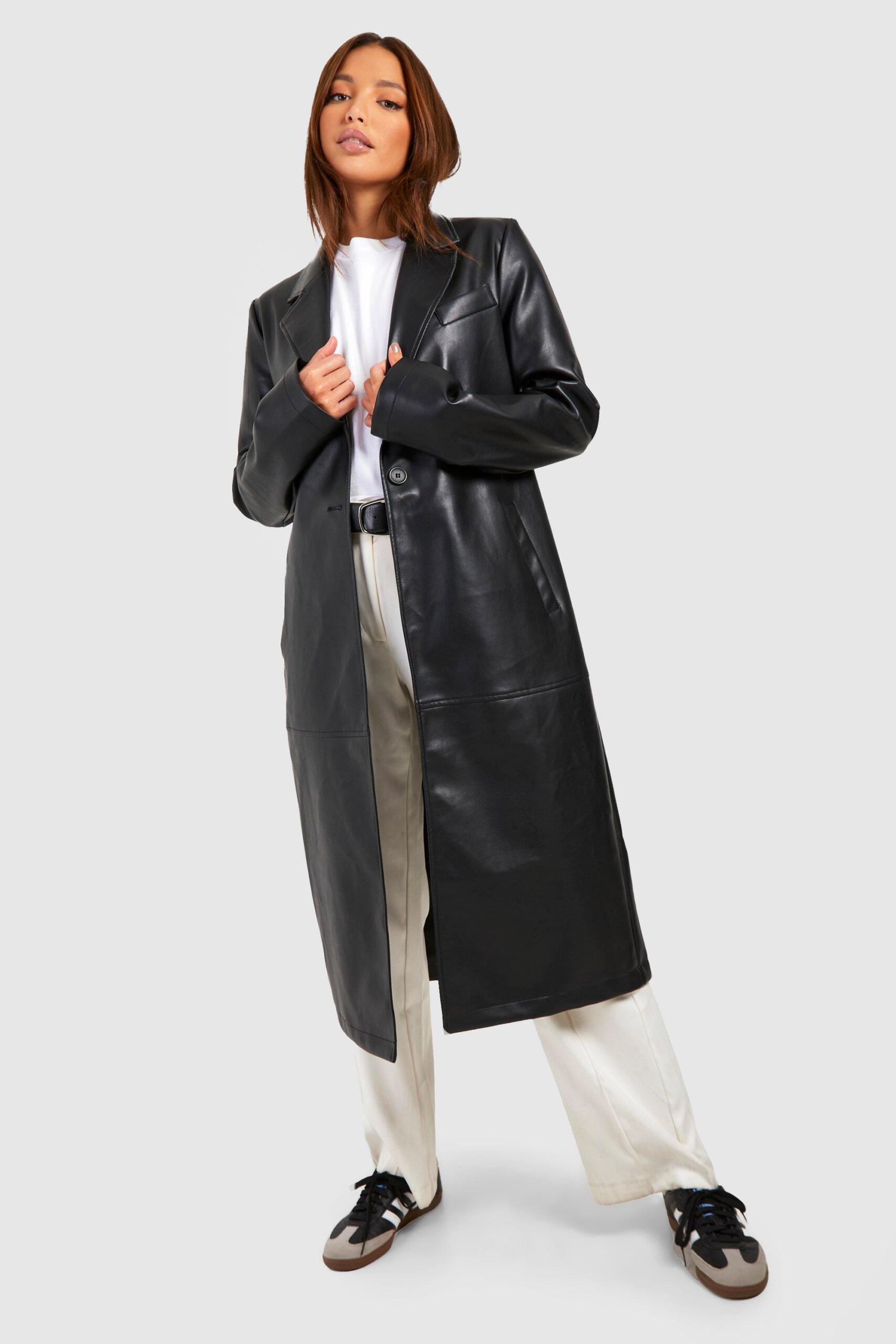Womens Faux Leather Maxi Button Detail Trench Coat BoohooSave 81%£17.00