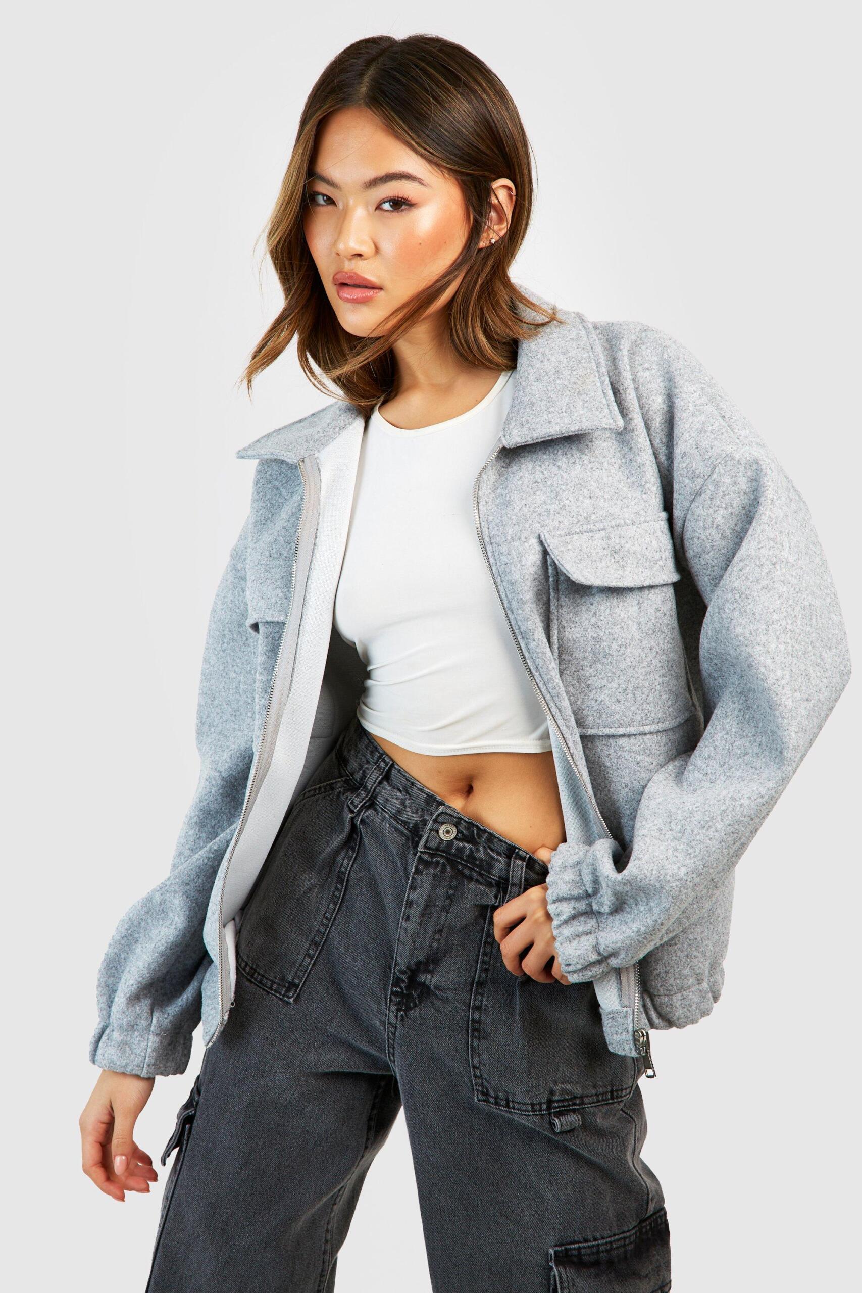 Womens Wool Look Pocket Detail Oversized Bomber Jacket BoohooSave 58%£17.00