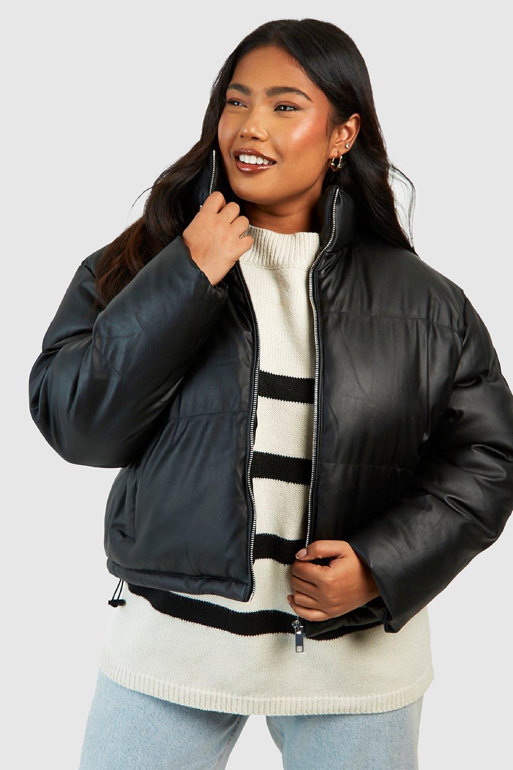 Womens Plus Pu Zip Up Puffer Coat BoohooSave 56%£24.00