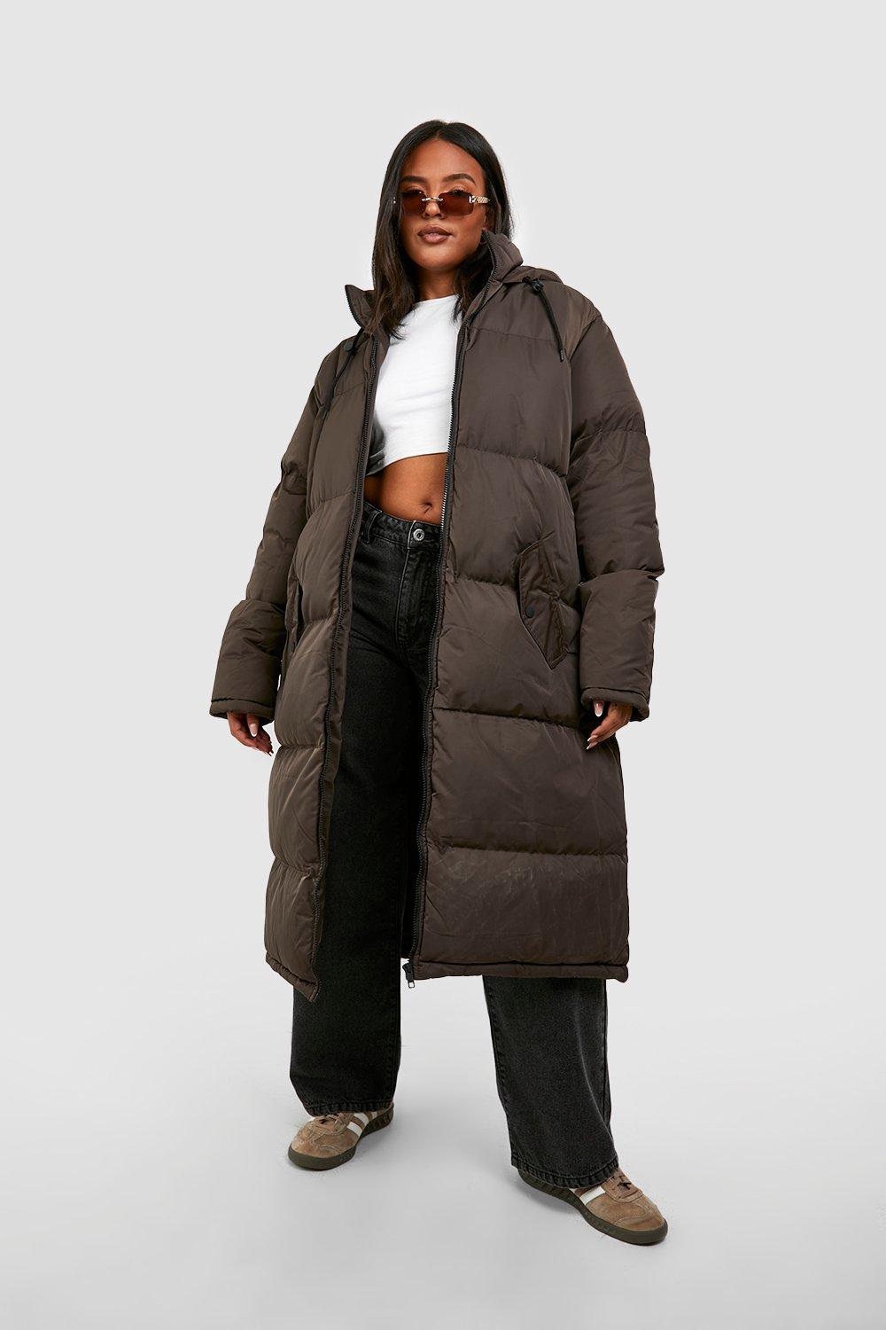 Womens Plus Hooded Longline Puffer Coat BoohooSave 20%£44.00