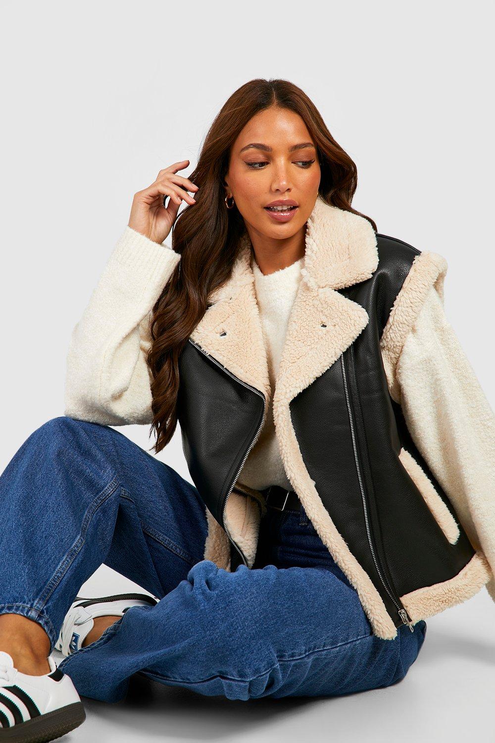 Womens Tall Teddy Trim Faux Leather Gilet BoohooSave 20%£36.00