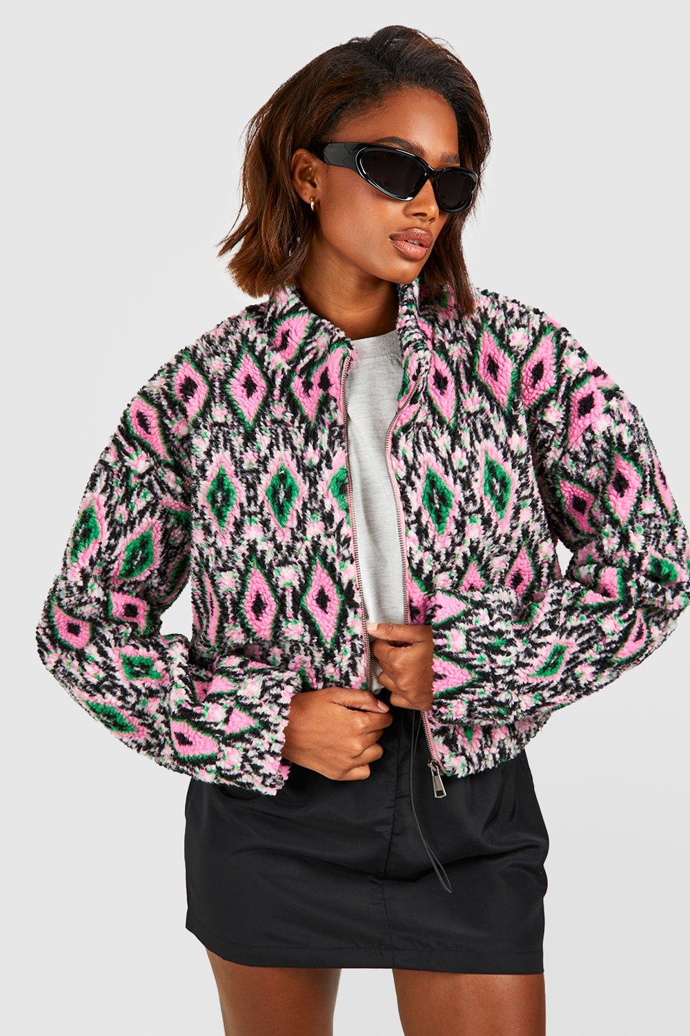Womens Printed Faux Fur Teddy Jacket BoohooSave 20%£28.00