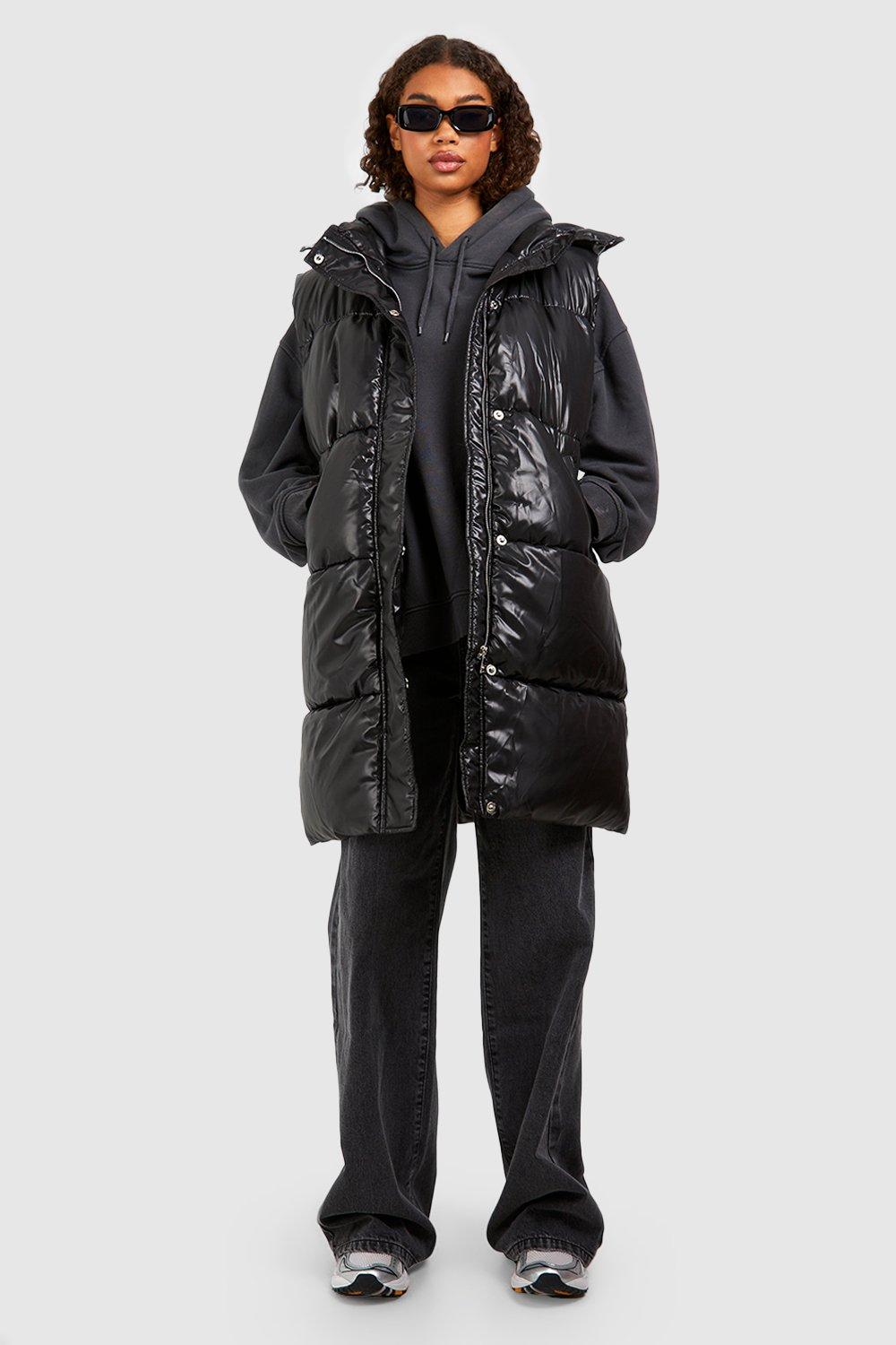 Womens Tall Hooded High Shine Puffer Gilet BoohooSave 60%£16.00