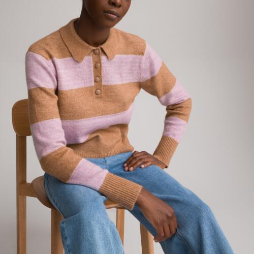 Striped Knit Polo Jumper La Redoute Collections £27.30 -