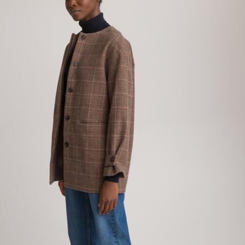 Checked Short Collarless Coat La Redoute Collections £48.75
