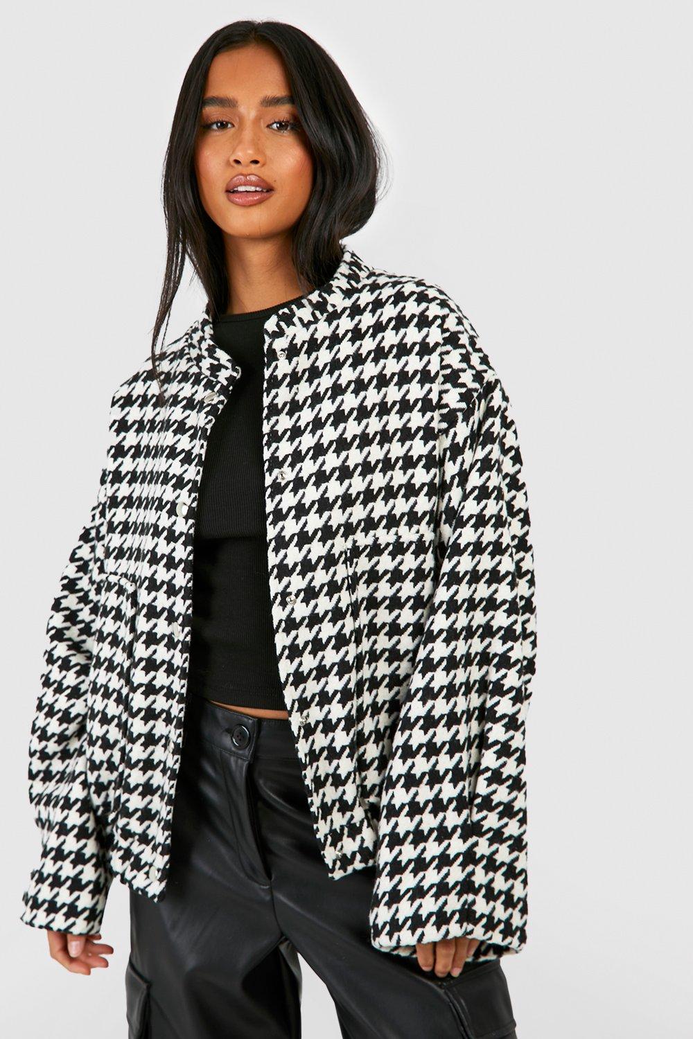 Womens Petite Dogtooth Bomber Jacket BoohooSave 76%£12.00