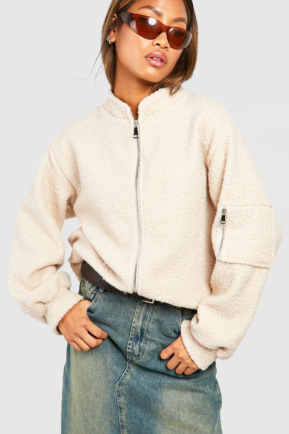 Womens Oversized Boucle Wool Look Bomber Jacket BoohooSave 64%£16.00