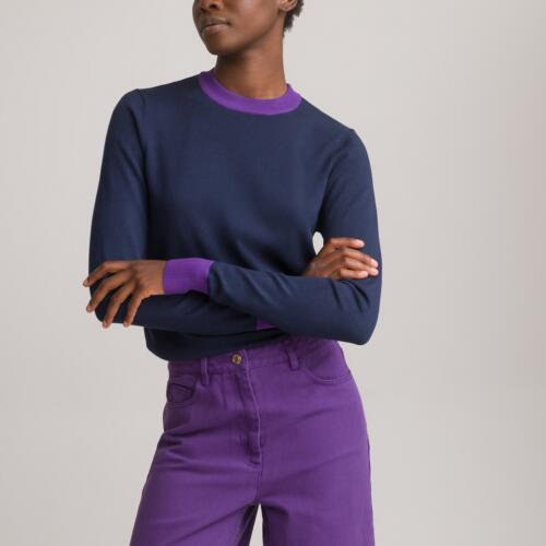 Two-Tone Jumper in Fine Knit with Crew Neck La Redoute Collections £20.80 -