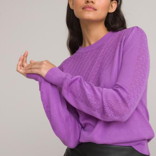 Cotton Mix Pointelle Jumper with Crew Neck La Redoute Collections £25.60 -