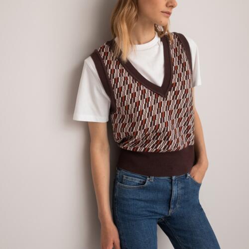Jacquard Knit Tank Top with V-Neck La Redoute Collections £20.80 -