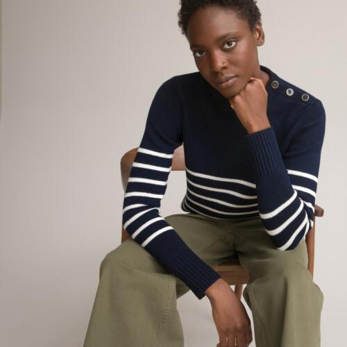 Breton Striped Jumper in Wool Mix with Crew Neck La Redoute Collections £45.50 -