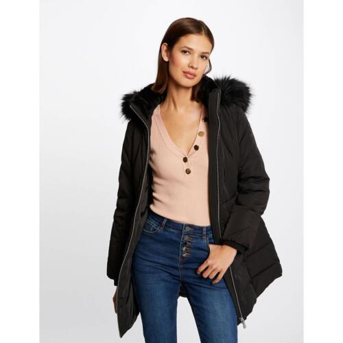 Long Winter Padded Jacket with Faux Fur Trim Hood Naf Naf £100.50 -