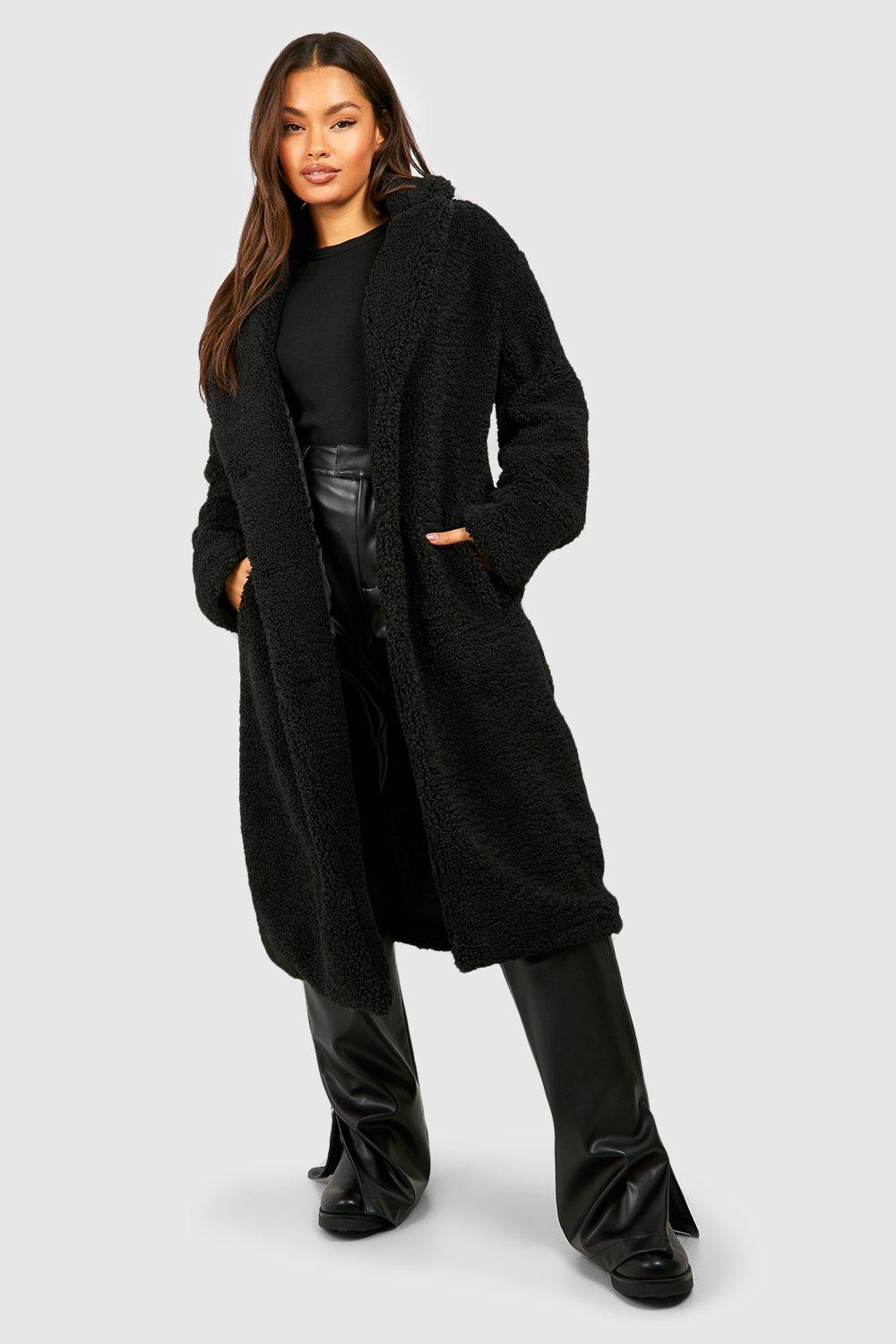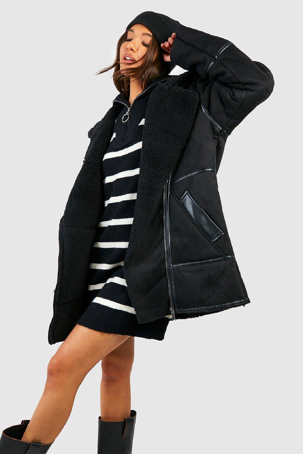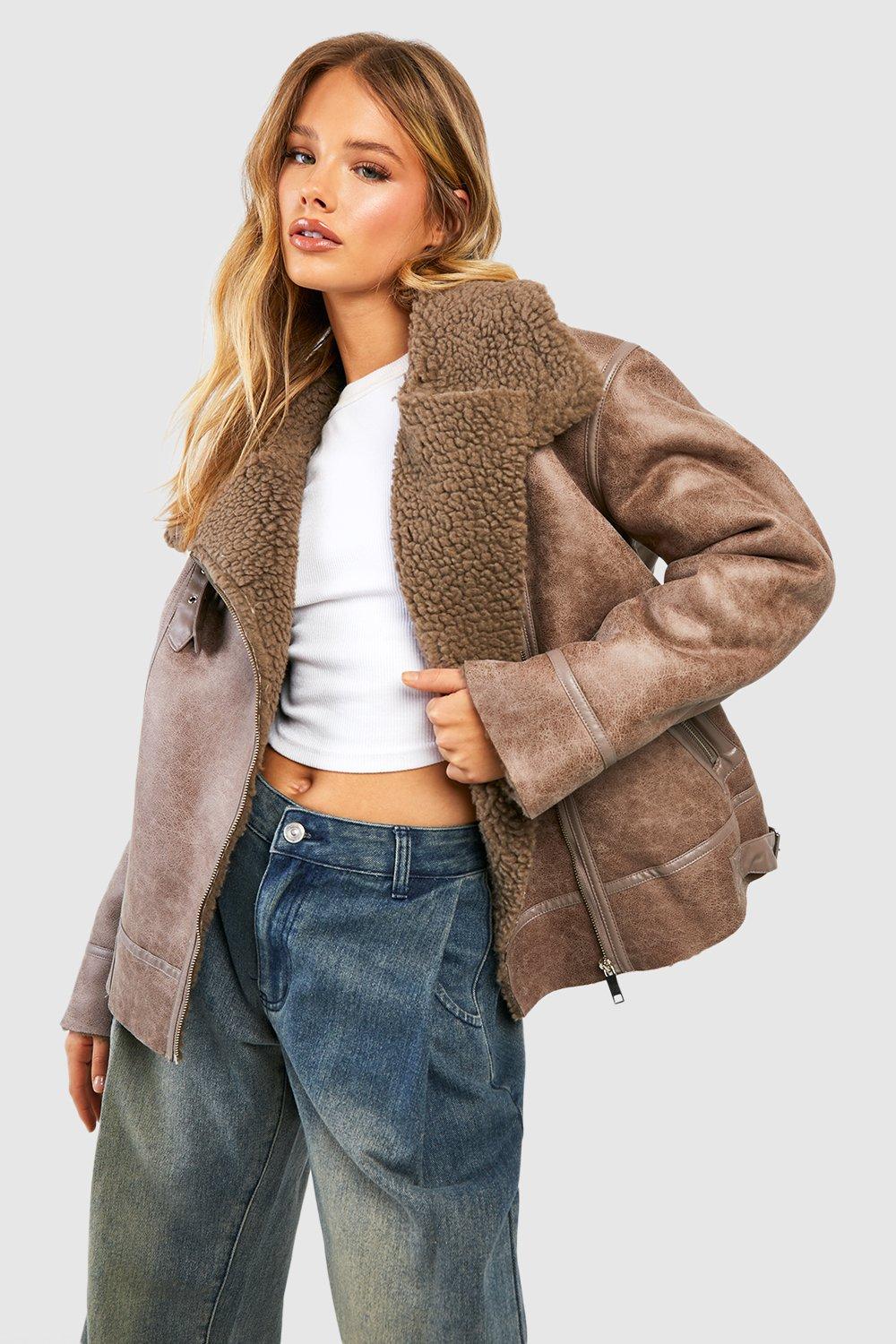 Womens Oversized Teddy Faux Fur Funnel Neck Jacket