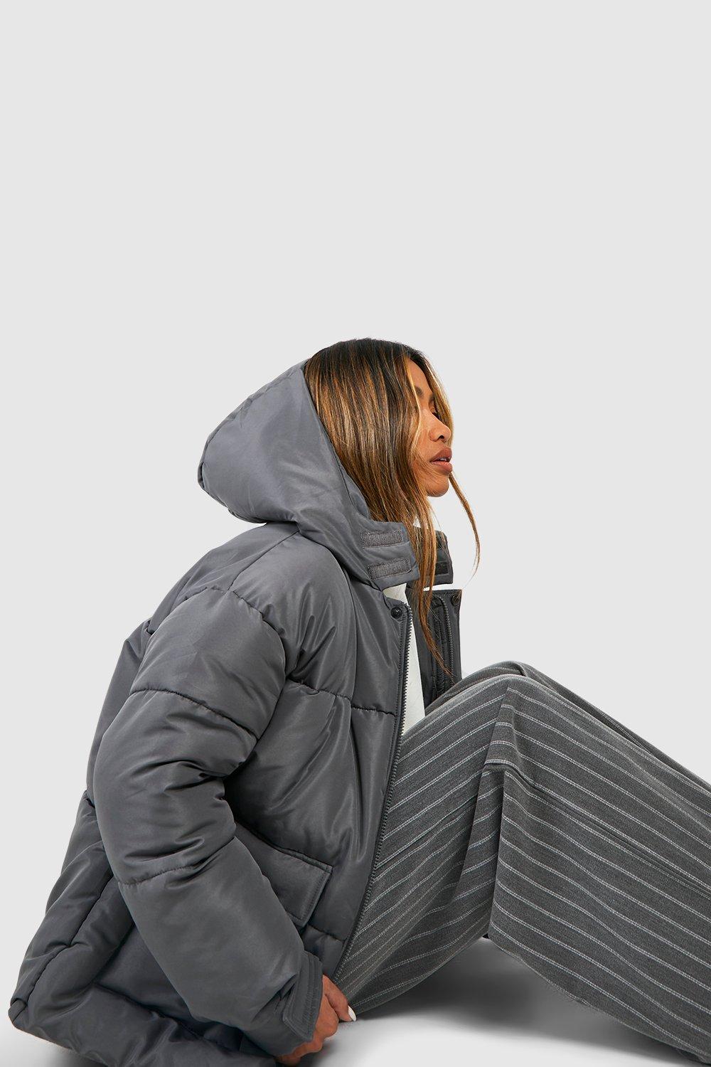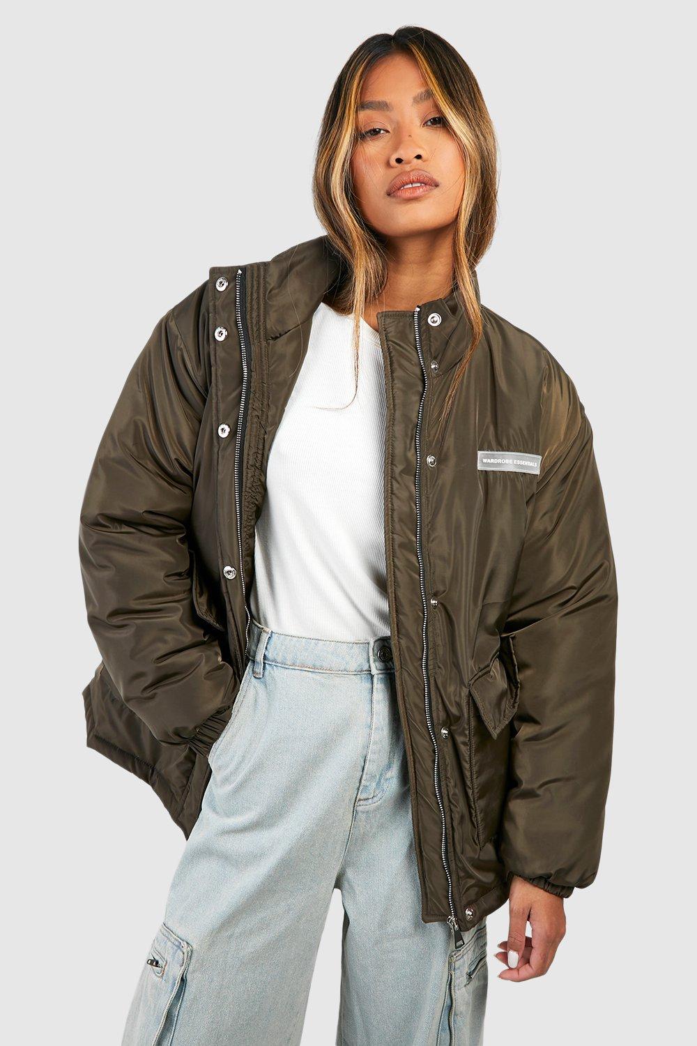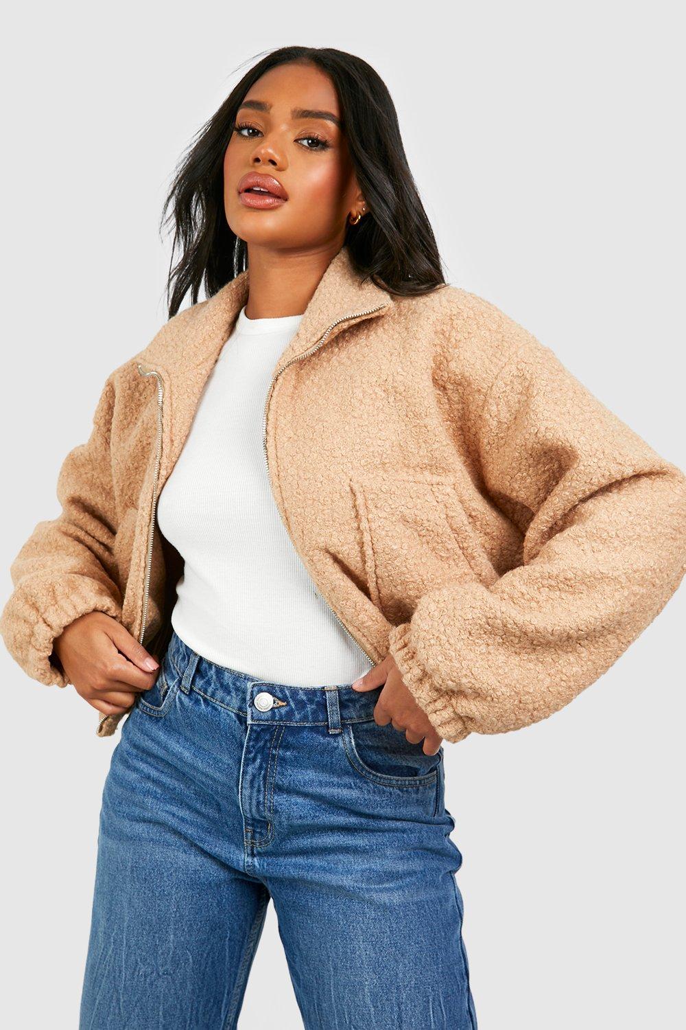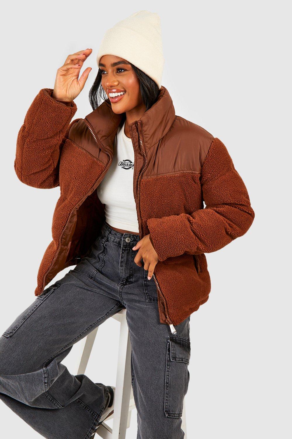 Womens Oversized Teddy Faux Fur Funnel Neck Jacket
