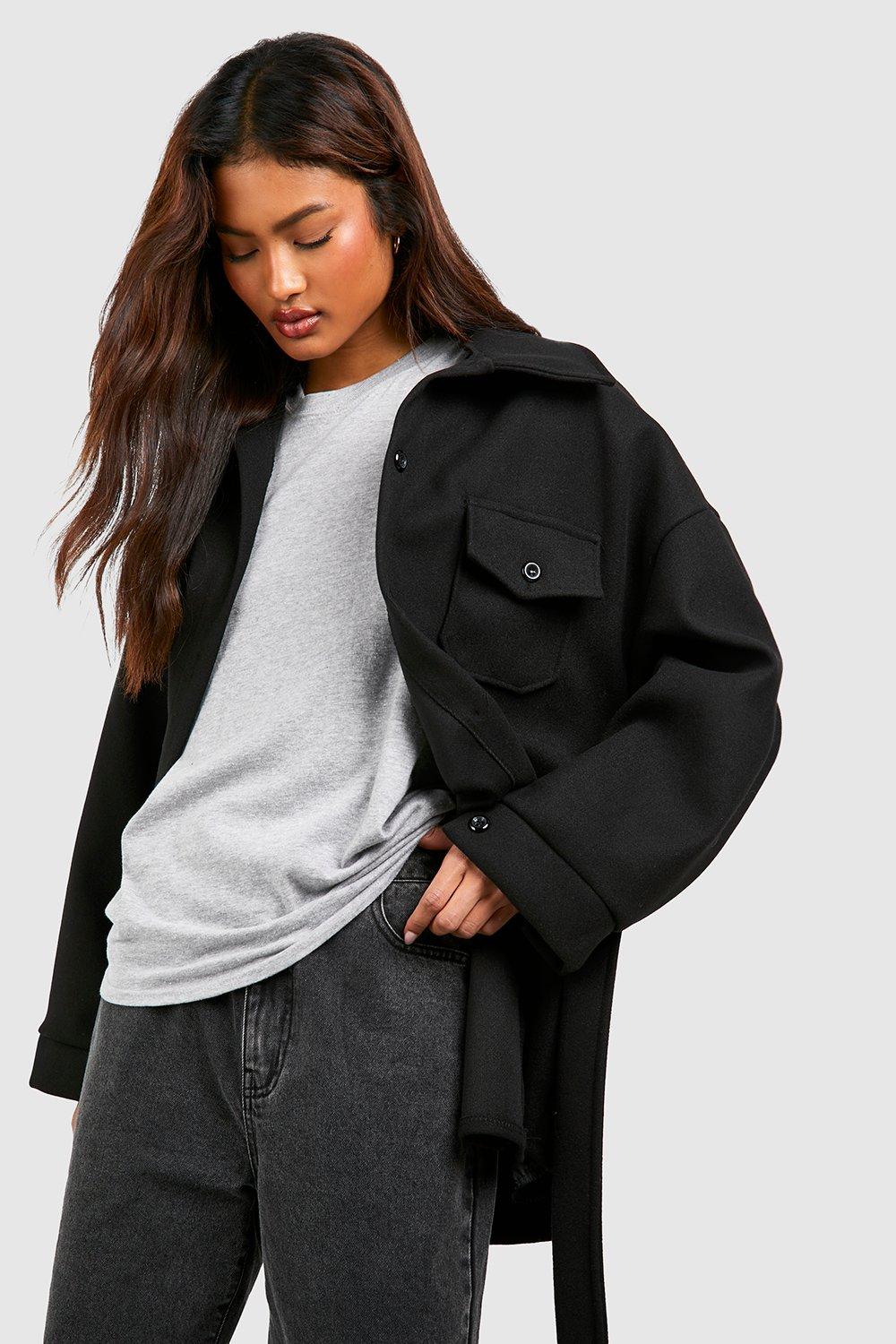 Womens Tall Herringbone Wool Look Oversized Blazer Jacket
