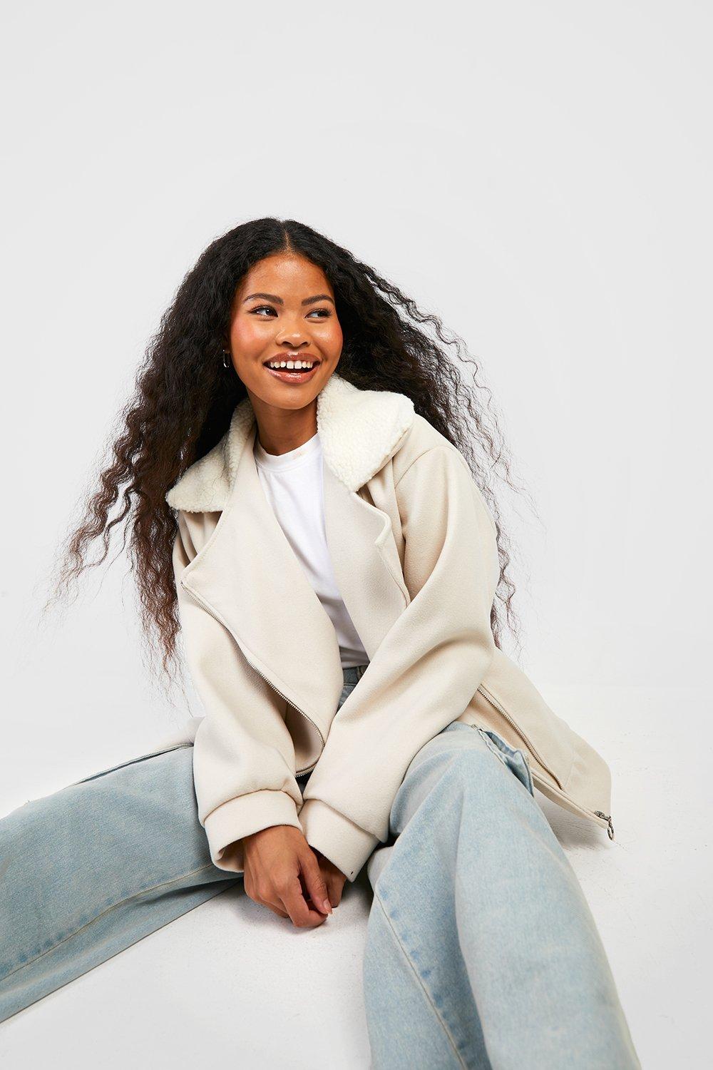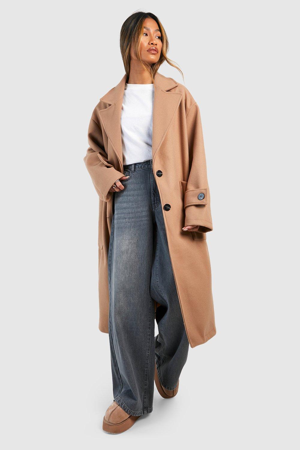 Womens Plus Premium Wool Look Collared Coat