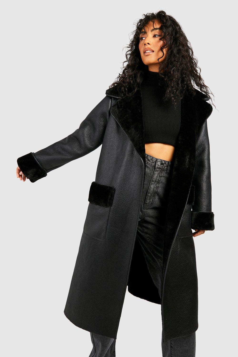 Womens Plus Vintage Look Maxi Aviator Coat