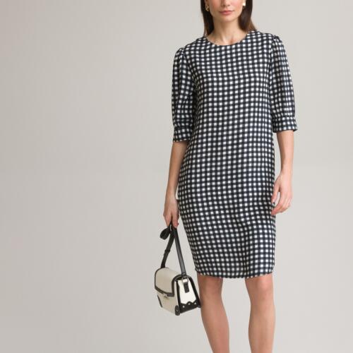 Mid-Length Shift Dress in Micro Gingham Print with Puff Sleeves Anne Weyburn £29.25 -