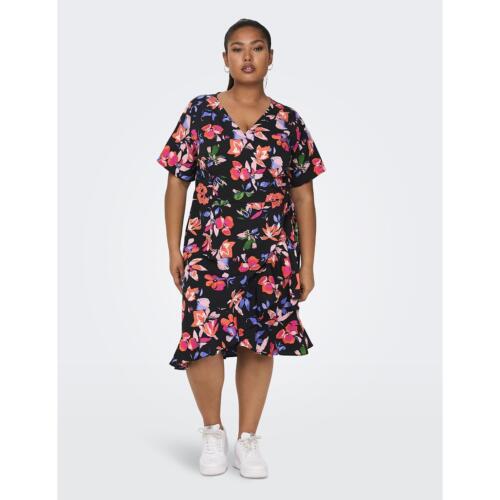 Knee-Length Wrapover Dress in Floral Print with Short Sleeves Only Carmakoma £25.50 -