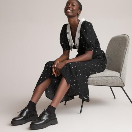 Recycled Polka Dot Dress with Embroidered Peter Pan Collar and Puff Sleeves La Redoute Collections £65.00 -
