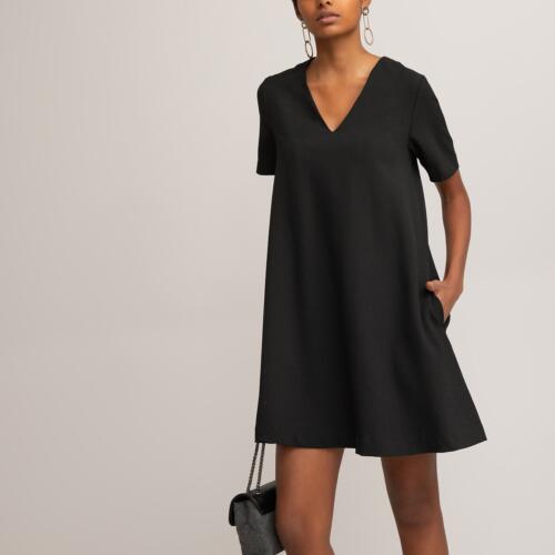 Crepe V-Neck Full Dress with Short Sleeves La Redoute Collections £23.10 -