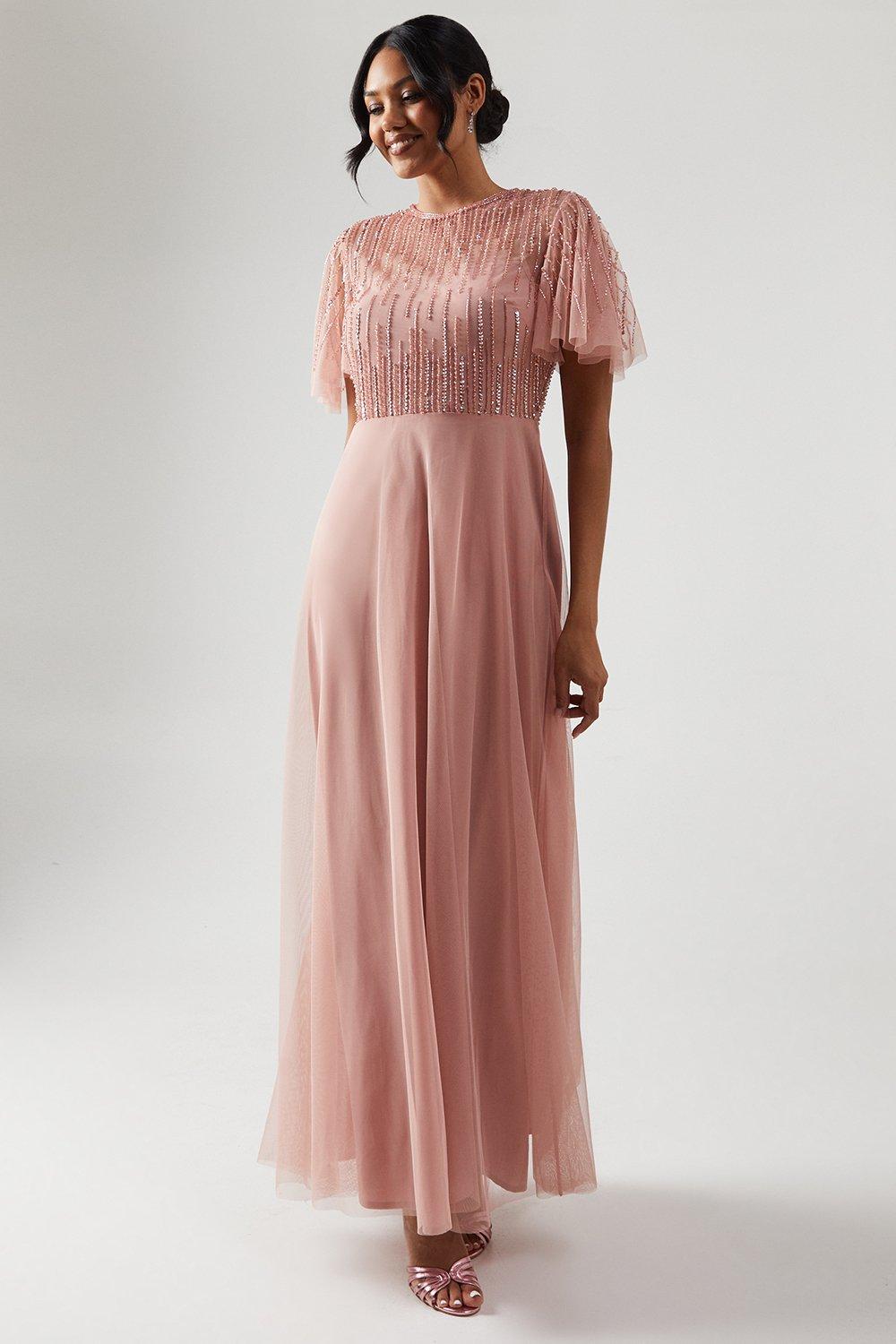 Save 76% V Neck Angel Sleeve Georgette With Embellished Crystals Bridesmaids Dress Coast £139.00 £34.00