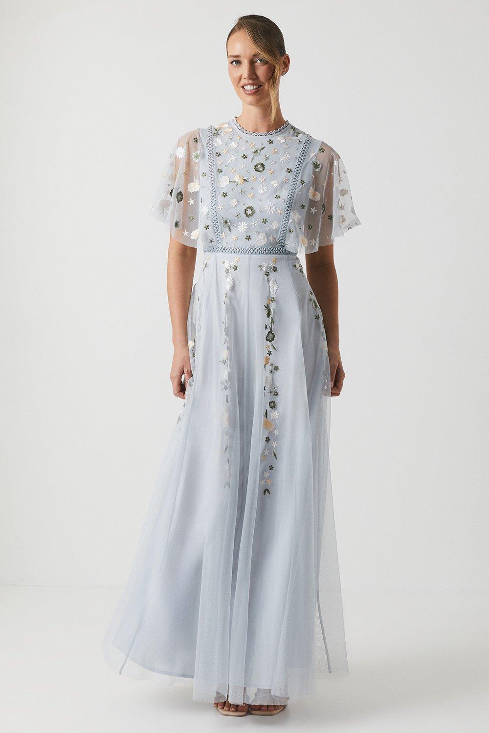 Tiered Mesh Bridesmaids Dress With Embellishment