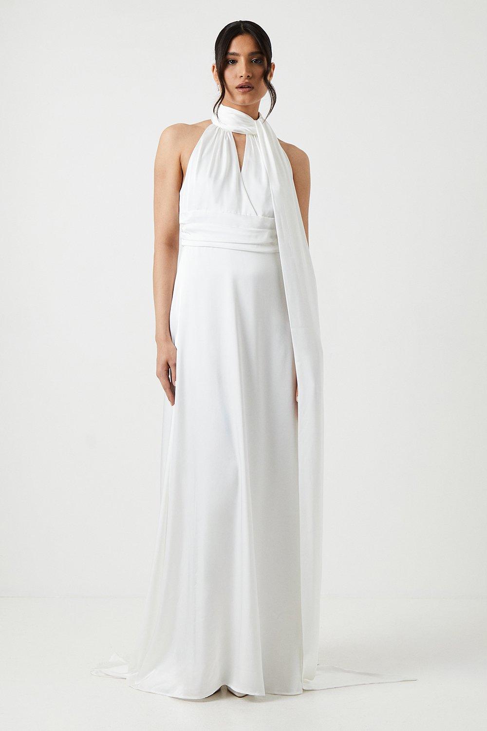 Satin Jacquard Halter Neck Bridesmaids Dress
