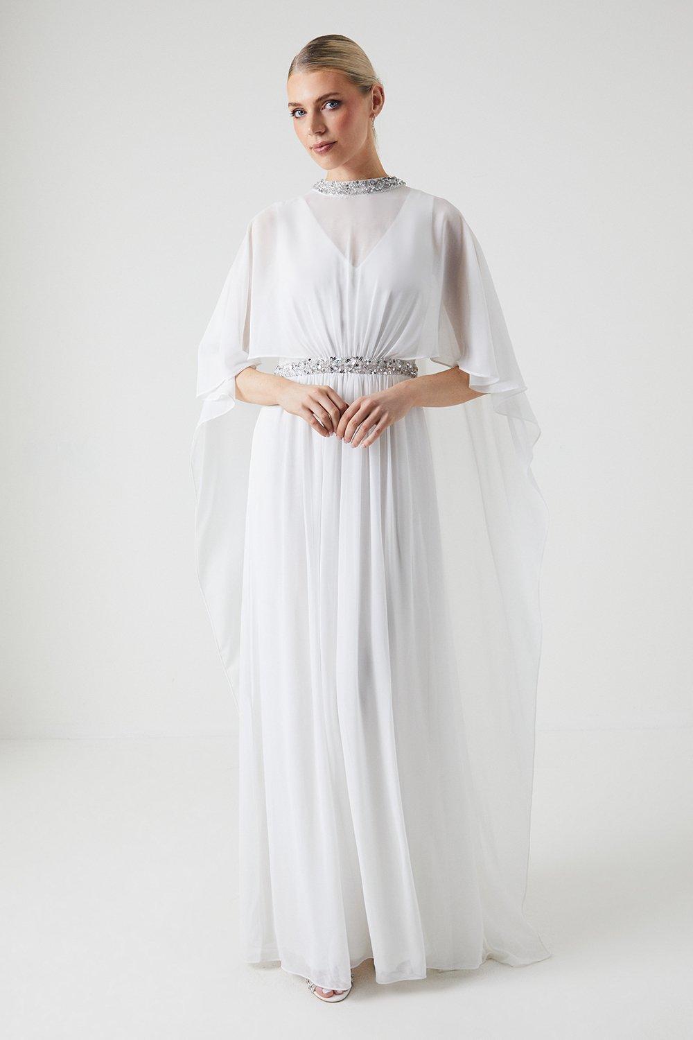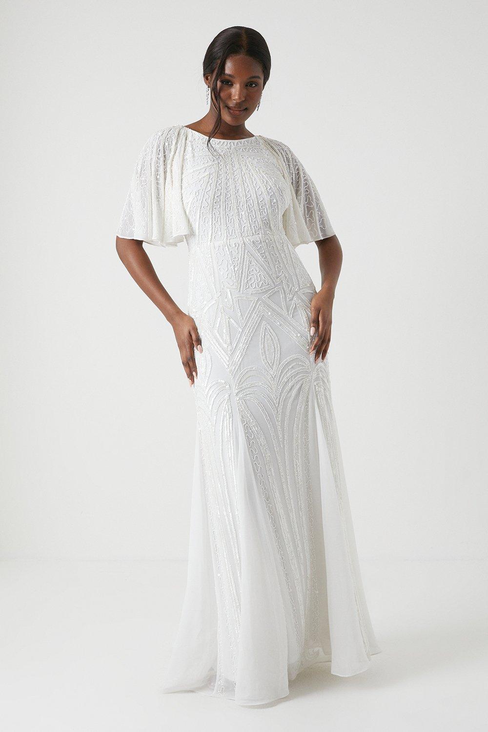 Stretch Mesh Angel Sleeve Bridesmaids Dress