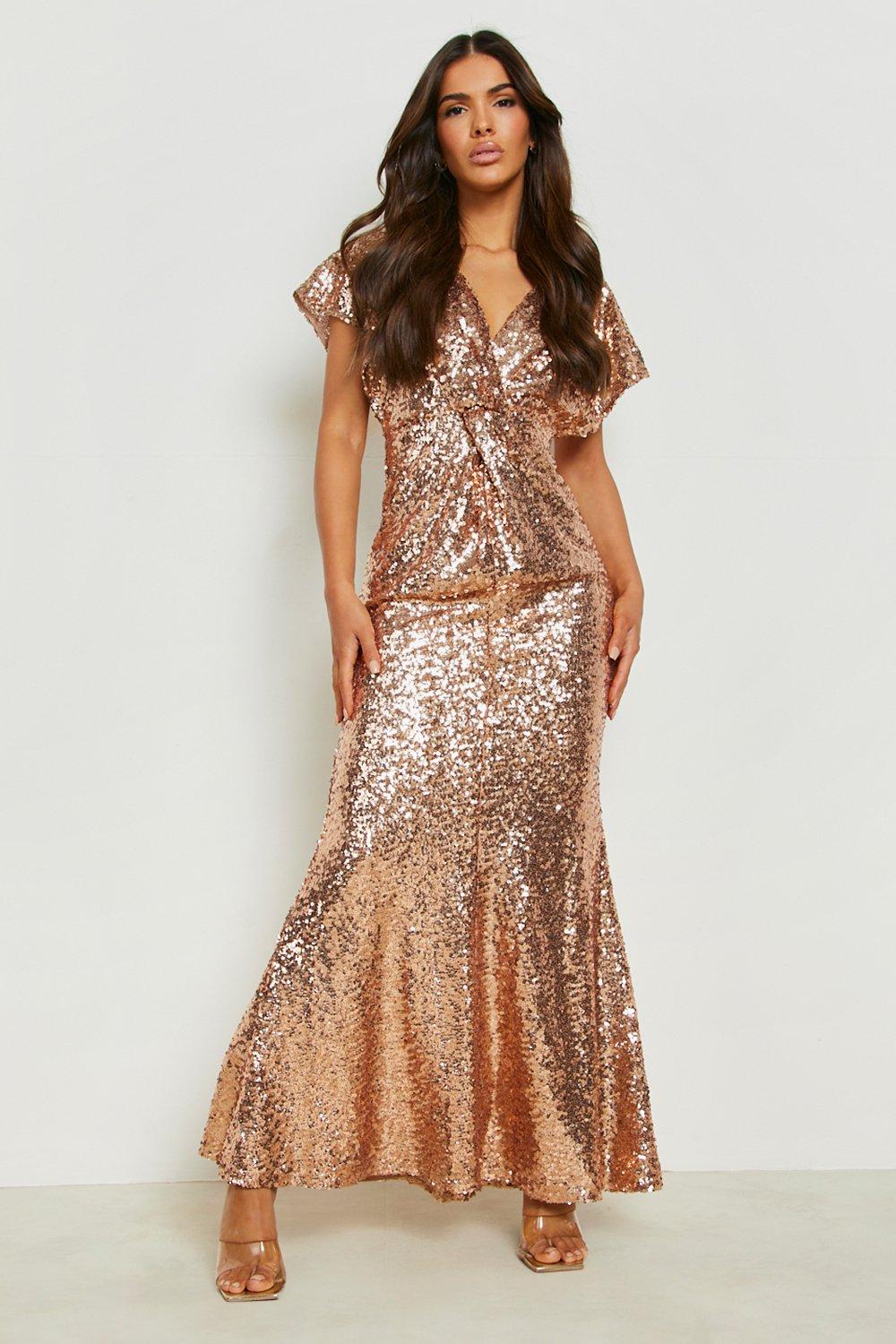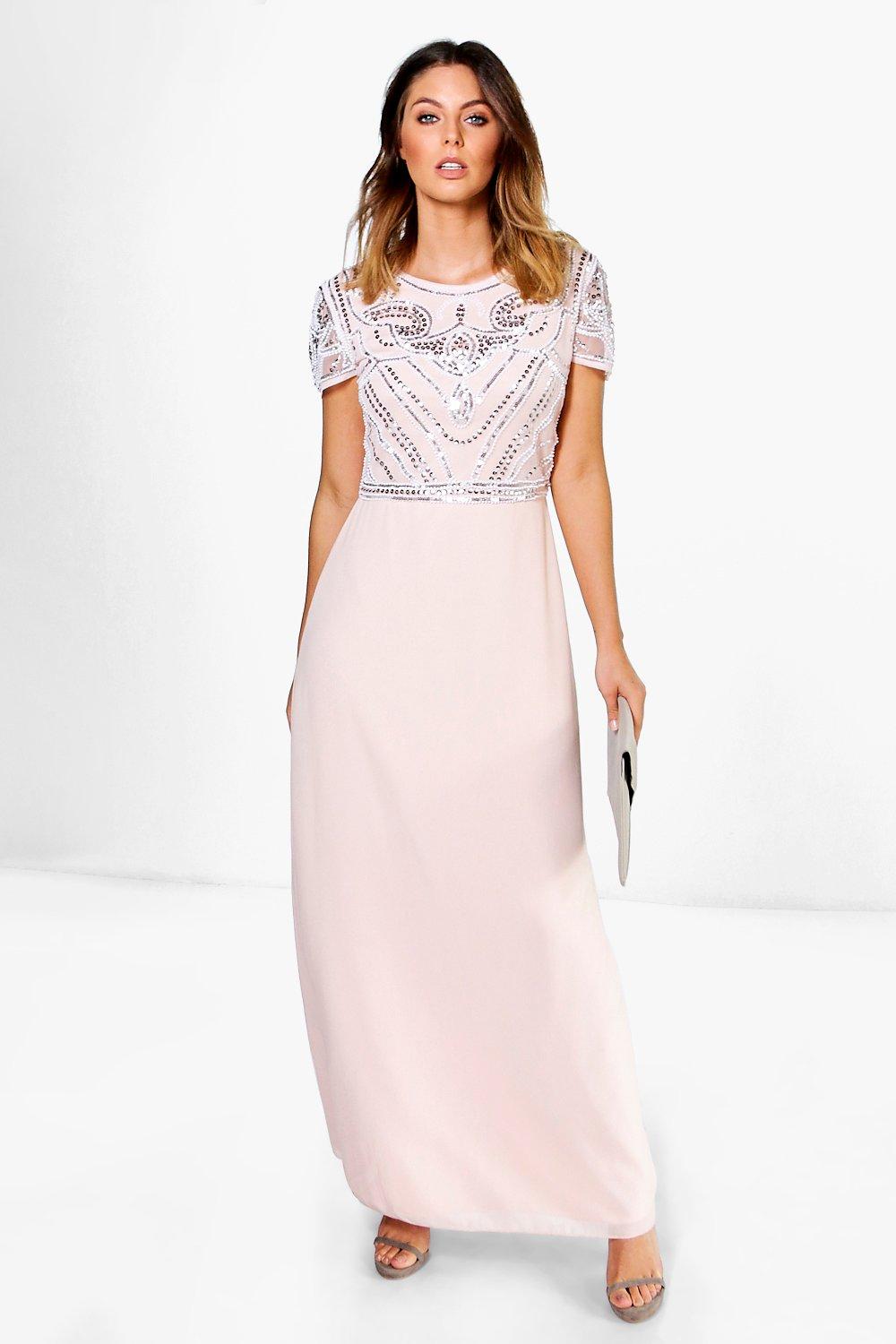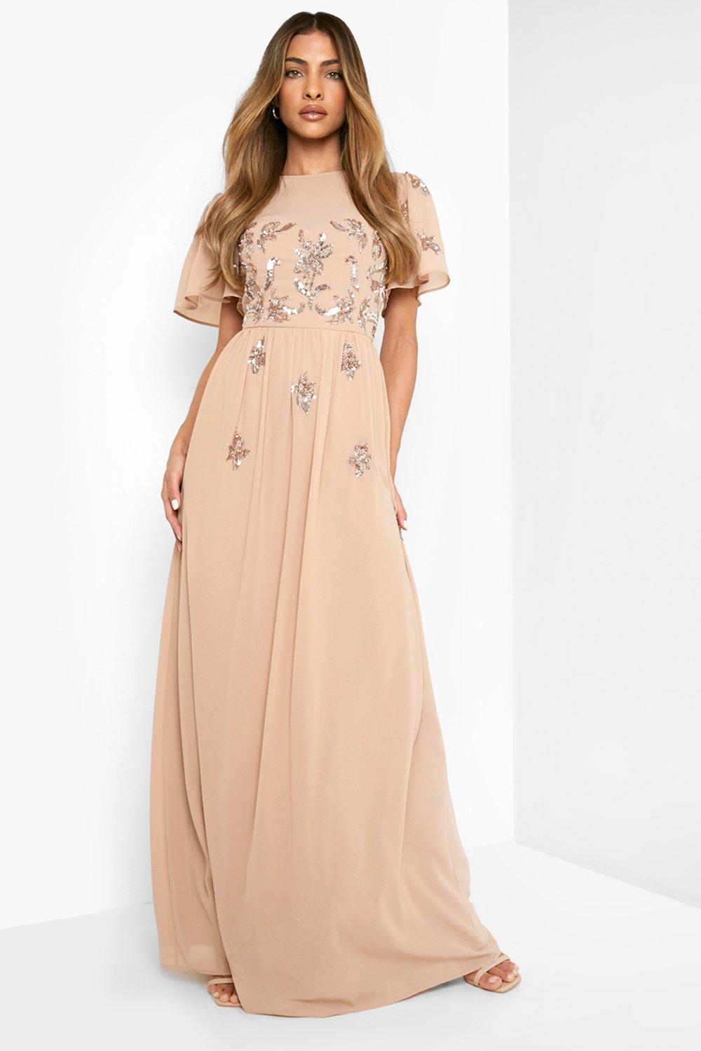 Womens Boutique Beaded Cap Sleeve Maxi Bridesmaid Dress