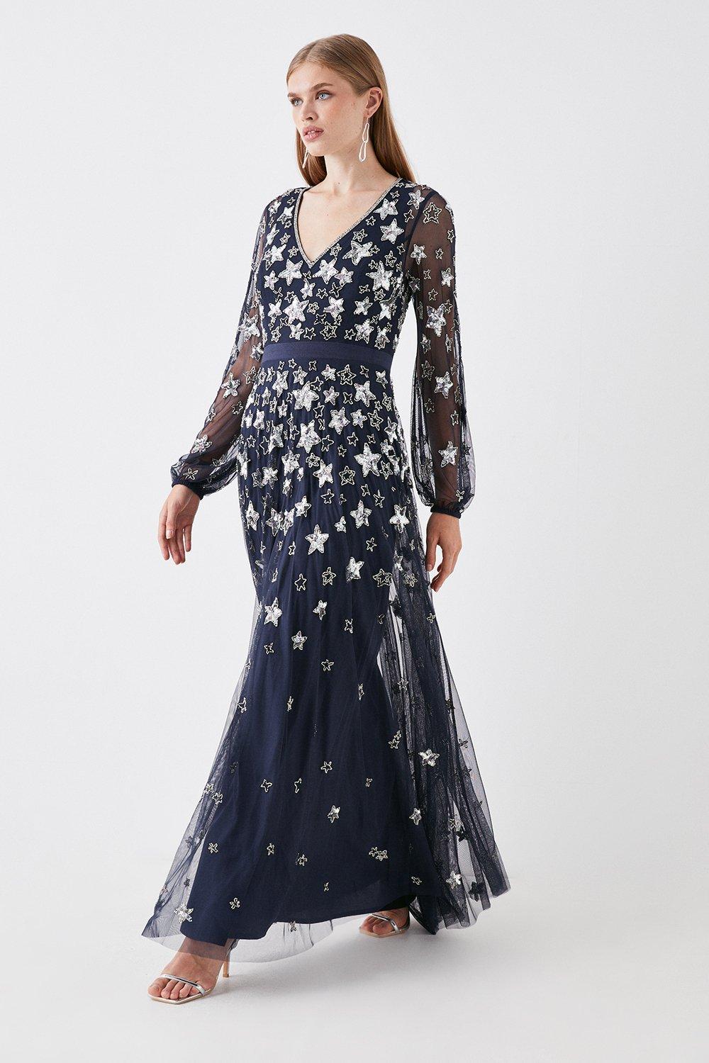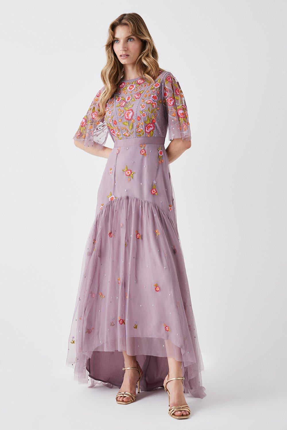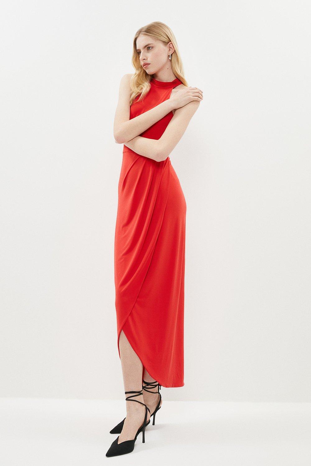 Printed Cowl Neck Ruffle Hem Maxi Dress