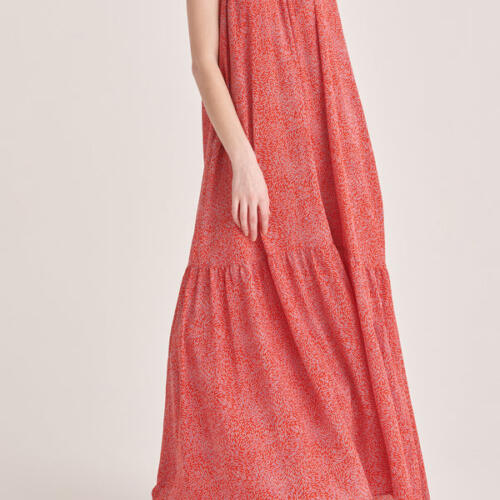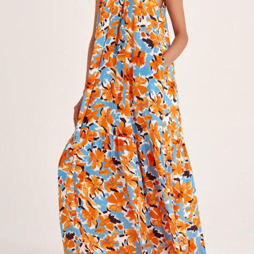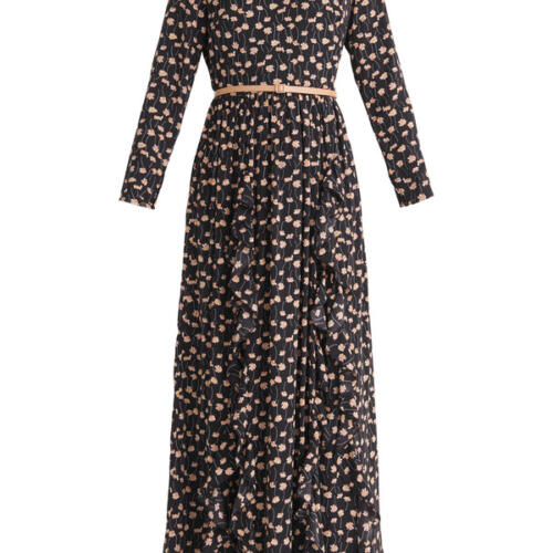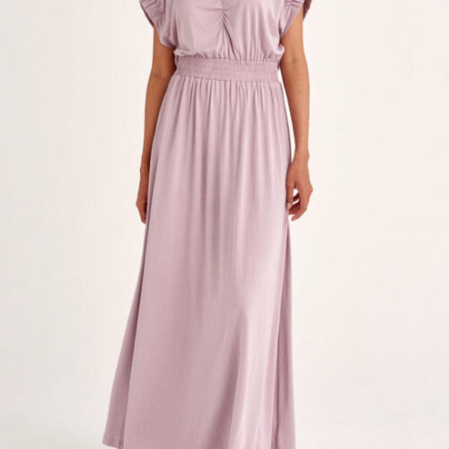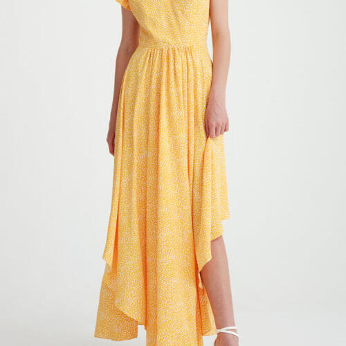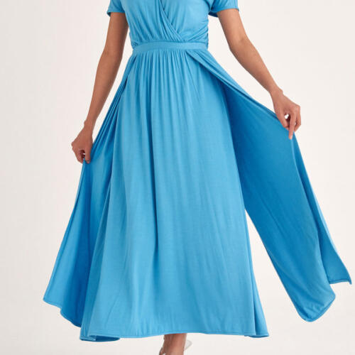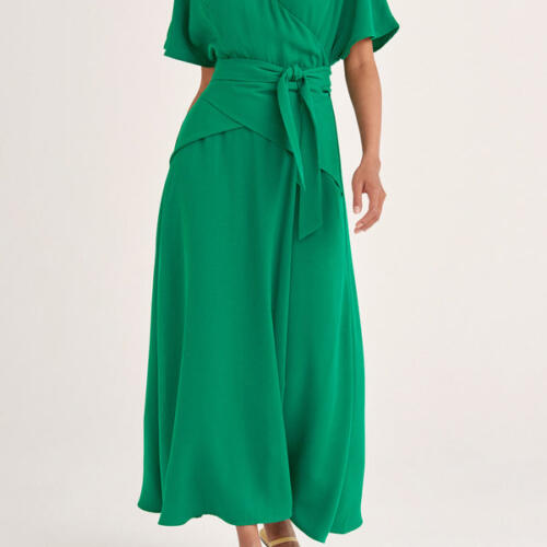 Womens Split Shoulder Wrap Ruffle Detail Maxi Dress