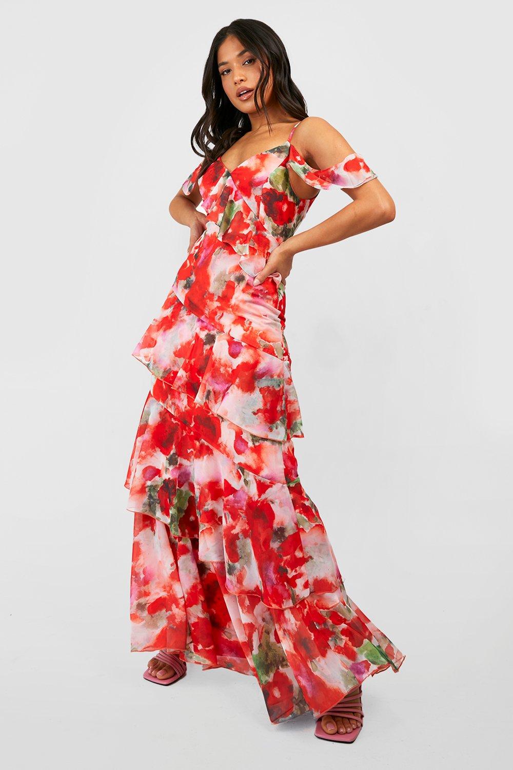 Womens Ombre Leopard Print Ruffle Detail Maxi Dress