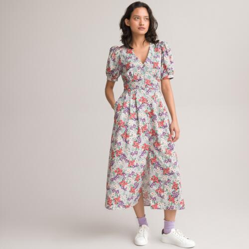 Organic Cotton Midaxi Dress in Floral Print with Short Puff Sleeves La Redoute Collections £68.00 -