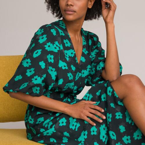 Floral Midaxi Dress with V-Neck and 3/4 Length Sleeves La Redoute Collections £56.00 -