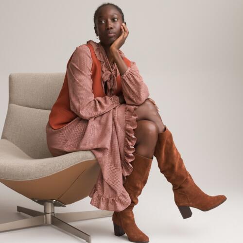 Recycled Midaxi Dress in Satin Jacquard with High Ruffled Neck La Redoute Collections £47.50 -