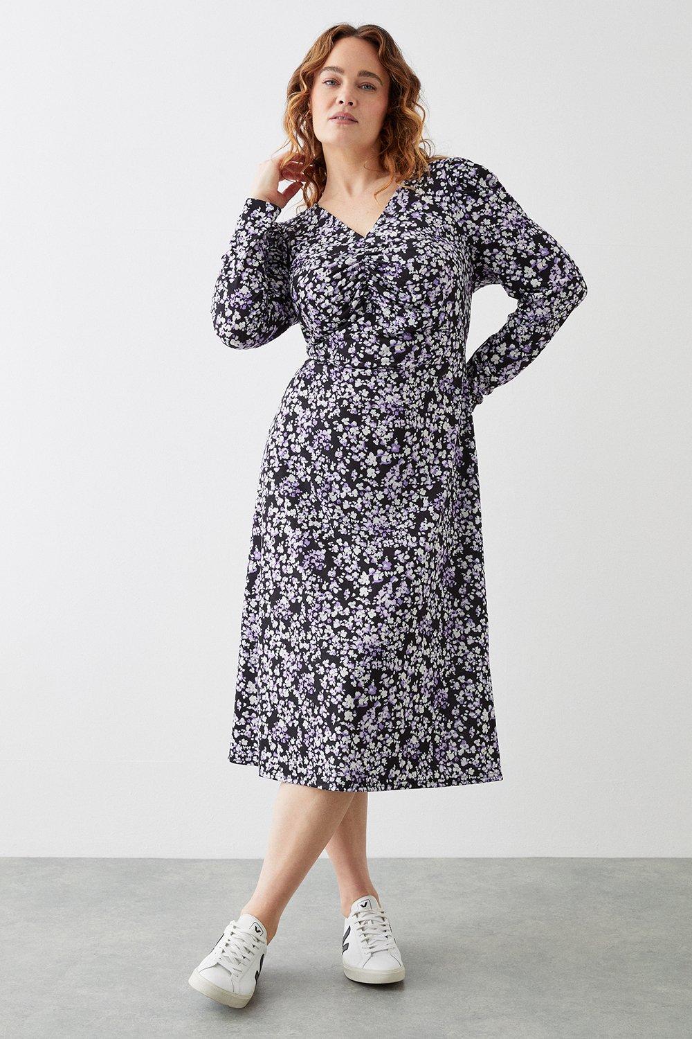 Save 60% Womens Curve Black Floral Ruched Front Short Sleeve Midi Dress Dorothy Perkins £45.00 £18.00