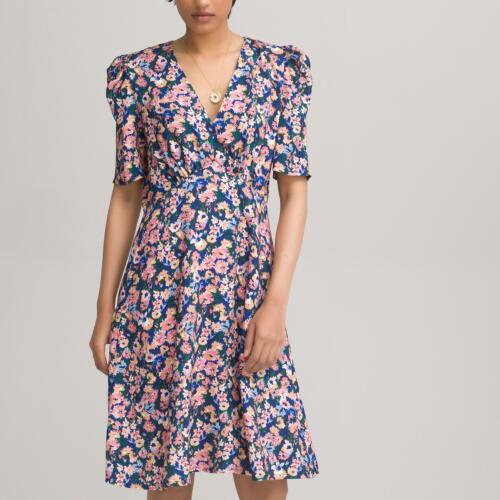 Floral Print Mini Dress with V-Neck and Short Puff Sleeves La Redoute Collections £31.20 -