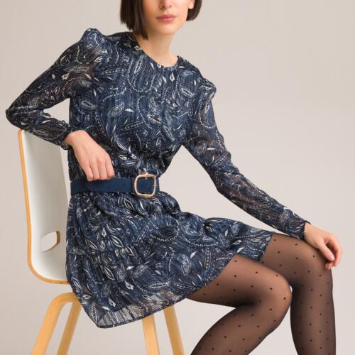 Paisley Print Mini Dress with Long Sleeves and Crew Neck La Redoute Collections £42.00 -