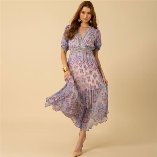 Dress Maxi V-Neck Paisley Print Hale Bob -